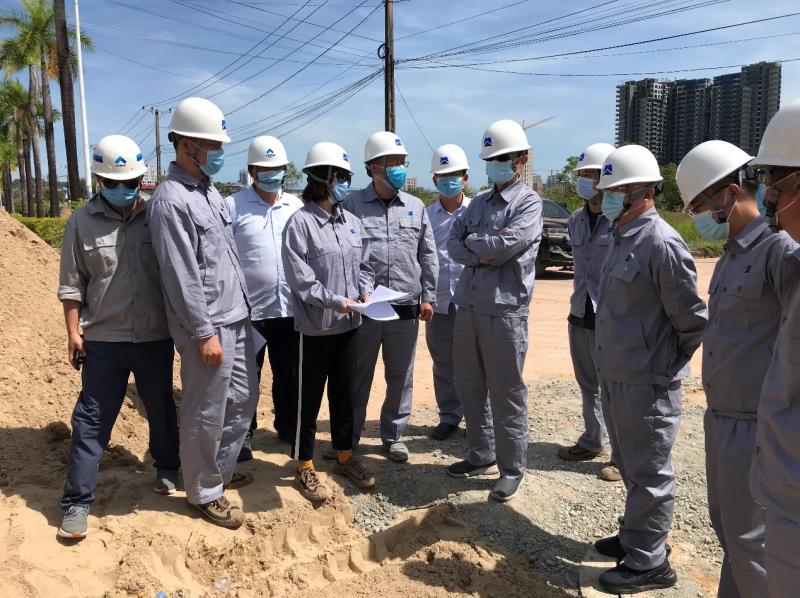 肖平一行先后考察了西港項目230kV線路部分和115kV地下電纜施工路段,詳細了解了項目基本情況、施工進度、安全生產和疫情防控等工作,并對項目部在常態(tài)化疫情防控中取得的工作成績表示肯定。