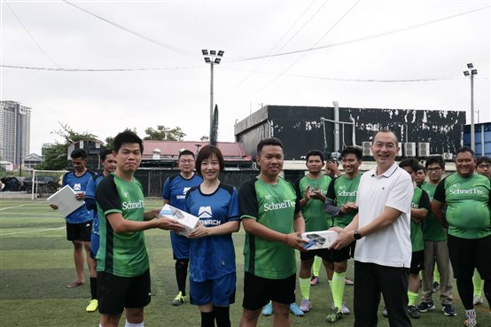 賽后,肖平和Heng Socheat先生共同為獲得最佳球員獎、最佳射手獎、最佳球風獎的球員頒獎。肖平表示,SchneiTec公司作為中機對外柬埔寨西港輸變電項目和柬泰邊境至馬德望500kV輸電線項目的業(yè)主,本次友誼賽意義重大,為中柬雙方公司提供了十分寶貴的交流機會,極大增進了彼此間的了解與信任,本次比賽不僅激發(fā)了大家強身健體的意識,增強了各自的團隊凝聚力,也為日后共同開展更多豐富多彩的活動打下了基礎(chǔ)。